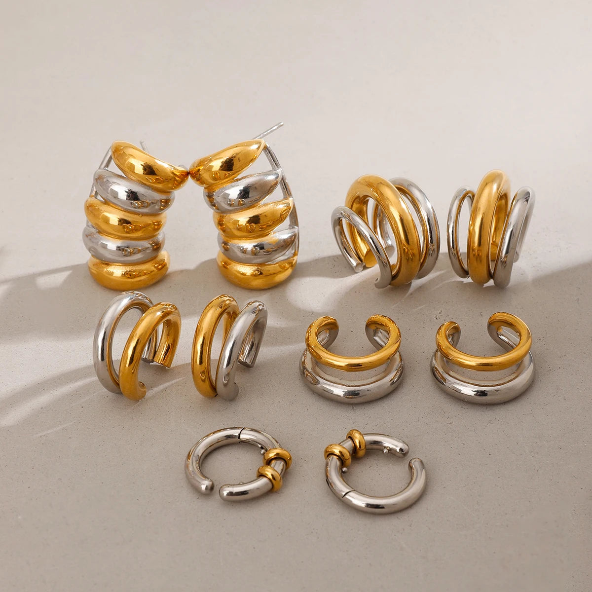 Creative 18K Gold Plated Stainless Steel Geometric Color Matching Ear Clip Series Women Waterproof Attractive Jewelry