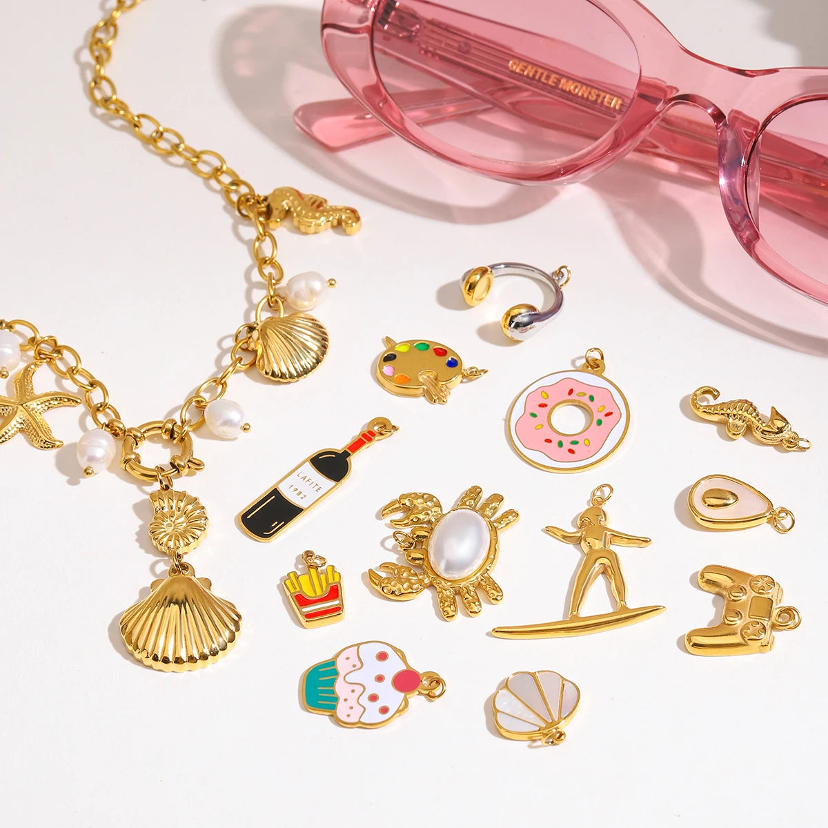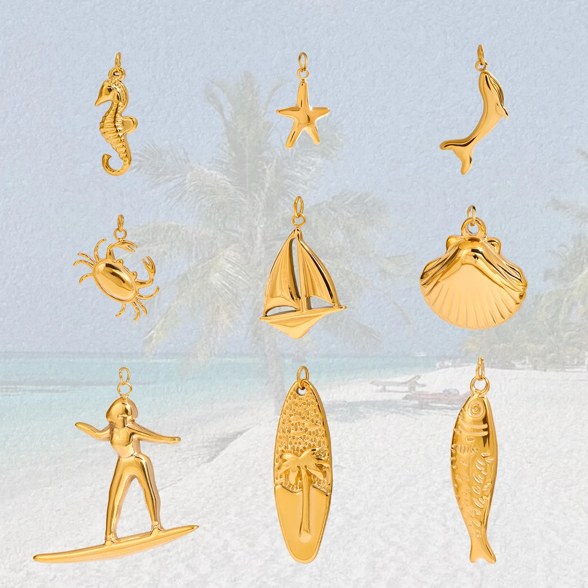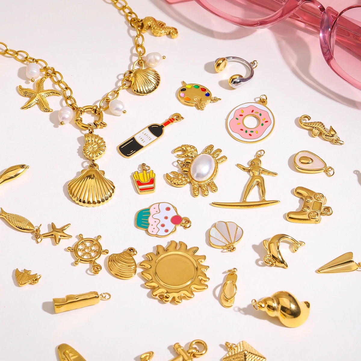 Zora Ocean Vacation 18K Gold Plated Stainless Steel Starfish Shell Pendant DIY Accessories Making Supplies for Necklace Bracelet